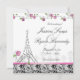 Convite para casamento Salve o cartão de data/convite com torre e rosas bonito em preto e branco em Paris e com o padrão de folha damask.