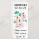 Cartão de passagem de embarque com mapa australiano em aquarela rosa desbotado com ícone famoso da Austrália, para casamento save the date. Todos os elementos são inteiramente personalizáveis.