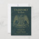 Esses casamentos bonitos, exceto os cartões de data, são feitos para se parecerem com um passaporte com um fundo de couro azul ou turquesa, uma águia americana e impressão de ouro. As costas se assemelham à dentro do passaporte com uma foto e carimbos bonitos de entrada que listam seu destino de casamento. Excelente maneira de deixar seus amigos e família saberem manter a data aberta para viajar ao seu casamento.