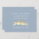 Elegante azul empoeirado salve o cartão de data com dois pombinhos dourados tocados em um galho delicado. Um design romântico e mínimo ideal para casamentos modernos, este cartão é totalmente personalizável com seus nomes e data de casamento. Perfeito para primavera, verão ou casamentos outono iniciais com um tema de pasta mole ou ouro. Um anúncio de eterno para casais que adoram simplicidade e sofisticação.