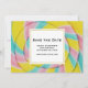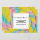 Salve o cartão de data com uma foto brilhante. Uma foto macro de um pirulito. Colores de pastel em um padrão espiral. Cor-de-rosa azul e amarelo.