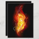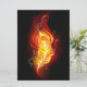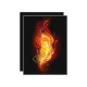 Pena de pavão brilhante feita de fogo e chamas sobre fundo negro.