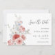 Pêssego impermeável de aquarela e floral azul suave salve o cartão de data com letra chic calliographic.