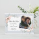 Esta foto salva a data oferece uma bela cor d'água de pêssego, um gráfico floral acentuado com uma borda azul leve e poeirenta.