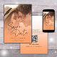 Este casamento moderno e minimalista Salve o cartão de data com um roteiro elegante. Ele toca com a simplicidade de um design de tipografia preto e branco, acrescentando apenas uma dica de cor de pêssego. No verso do convite você pode adicionar as informações do seu site de casamento, bem como um código QR para seus convidados digitalizarem. É a escolha perfeita para casais que apreciam elegância limpa e moderna. Para qualquer necessidade especial de design, fique à vontade para entrar em contato diretamente com o designer, enviando um e-mail para choosehappystudio@yahoo.com