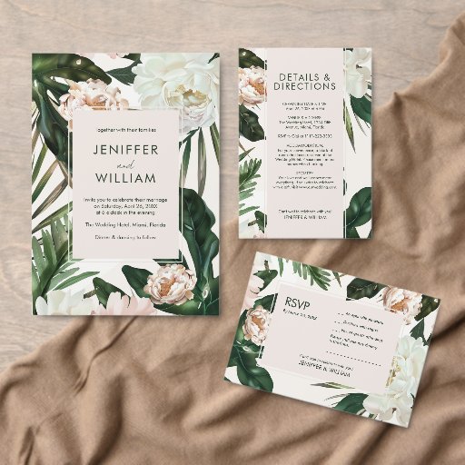 Elevem a sua papelaria de casamento com os nossos Peach White Peonies & Green Leaves Floral Wedding designs. Este é mais um Design original de 100% de Hamster.