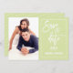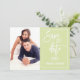Casamento Salve o cartão com fotos Data com script cursivo de escrita manual e esquema de cores de tendência personalizável para as suas especificações de evento. A imagem de exemplo foi usada com permissão.