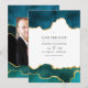 Aquarela em tons de azul verde e falso folheado a ouro pedra de ágata convite de casamento personalizável para os detalhes do seu evento.