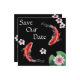 Este casamento Salvar o convite da Data captura a beleza oriental do Japão. Tem um belo fundo preto com dois peixes Koi nadando cercados por um caldeirão lírio e flores. O peixe Koi simboliza o amor no Japão.
