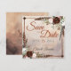 Um complemento perfeito para o tema de casamento Rustic Woodland Feathers e Floral Bloom Collection, este cartão postal de save the date apresenta uma moldura de madeira bordeada por uma variedade de flores brancas, cor de nogueira e burgundy, folhas da floresta e um conjunto de penas rústicas colocadas sobre uma tela pintada à mão em bege, castanho, taupe e umber. Personalize facilmente o conteúdo com seus nomes e data. O verso apresenta suas iniciais e qualquer informação que você gostaria de adicionar, como seu site. Se você está pedindo à sua família e amigos para guardar uma das datas mais importantes da sua vida, por que não ir um passo além e pedir com estilo?