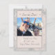 Design apresenta um elegante pessegueiro e cinza com o efeito "marmoreado" como fundo da sua foto. A aparência de fitas delicadas cobre a design. O lado inverso apresenta o mesmo efeito de marmoreação com a imagem de fita e de arroz jogado. Concebido para acompanhar a coleção "Pêssego e Cinza Marble". Todo texto é personalizável.