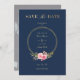 Custom Photo Navy Elegant Pink Garland Wreath Wedding Save the Date.