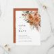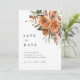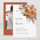 Warm terracotta tones paired with romantic rose florals create an elegant boho save the date card designed for modern yet timeless celebrations.