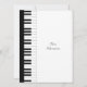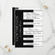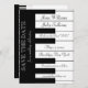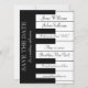 A carta apresenta um teclado de piano anunciando o casamento da noiva e do noivo e a data de sua execução do dueto 'Eu faço'. Totalmente personalizável com a sua escolha de detalhes de casamento impressos nas teclas brancas do piano. Há também espaço no verso para mais informações, se necessário, ao lado de uma borda do teclado de piano.