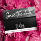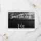 Um cartão moderno que salva a data com um estilo de tipografia manuscrito fresco e casual, que evoca a aparência de um marcador de pincel. Projetado para acomodar sua foto favorita de noivado de sangramento horizontal ou orientada a paisagem, este cartão chic apresenta "salvar a data" como uma sobreposição de texto branco no topo com seus nomes, data do casamento e local do casamento mostrados em preto e branco ao longo da parte inferior. Cartões inverter um padrão de ikat sutil com espaço para incluir sua URL do site de casamento ou qualquer informação adicional que você escolher.