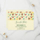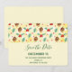Salve o cartão de ponto com um padrão fofo que inclui pinos cones e holly em um fundo de aquarela amarela com pequenos círculos brancos espalhados por aí.