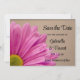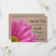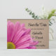 Anuncie sua cerimônia de casamento cor-de-rosa bonito e tema de recepção com a elegante Margarida Rosa no Casamento Tan Salve o Anúncio de Data. Esse nupcial floral fofo e personalizado mantém a data com uma fotografia floral pintada digitalmente de uma flor de margarida rosa com um fundo bronzeado. Disponível como um convite impresso para envio por correio ou como um download digital para fácil compartilhamento digital online. Inspo ou ideia única para um evento de festa de jardim.
