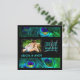 O monograma da PixDezines pode ser excluído, foto salvar data com destaque para pena de pavão azul com texto de DIY, cortes e cores de fundo.