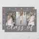 Colagem de três fotos com o script caprichoso personalizado "class of" em folha de rosa faux com o ano na mesma cor. Todas as informações estão em sans serif elegante na parte superior do cartão. O verso é o padrão brilhante da bolinhas rosa-forte. Faça belos anúncios personalizados com fácil personalização.