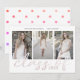 Colagem de três fotos com o script caprichoso personalizado "class of" em folha de rosa faux com o ano na mesma cor. Todas as informações estão em sans serif elegante na parte superior do cartão. O verso é o padrão brilhante da bolinhas rosa-forte. Faça belos anúncios personalizados com fácil personalização.