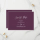 Este moody de coordenadas roxas plum horizontal, salvo o cartão de data é perfeito para um casamento moderno. O elegante design de tom de joia boho apresenta uma cor roxa de beringela escura sólida com um toque boêmico moderno. Coordena-se com a Coleção de Sangue Roxo Moody por Paperie Fresca e Iummy.