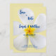 Um design floral suave e delicado com uma flor de Plumeria havaiana branca em um fundo amarelo suave. Um conjunto de convites perfeito para o casamento na praia, casamento havaiano, casamento em destino de ilha tropical e mais. O significado havaiano para a flor de Plumeria é "novos começos" e "positividade". Ambos perfeitos para os novos começos de um relacionamento casado.