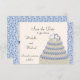 Casamento Salve o cartão de data em um padrão simples de espiral florentina em cores azuis em pó. O padrão impresso tem sotaques gráficos de fita predefinidos em um fundo branco suave, todos formatados e prontos para serem editados com seus próprios detalhes no editor de texto fácil do Zazzle. Disponível em 6 cores. Convite de correspondência, placas RSVP, placas de tenda de mesa e envelopes internos de padrão impressão também disponíveis separadamente nesta coleção. *Permitir semanas extras para envelopes personalizados correspondentes.