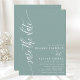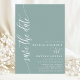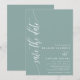 Este cartão de save the date em teal empoeirado apresenta uma fonte de letra moderna que adiciona um toque de elegância atemporal. O design minimalista mantém o foco nos seus nomes e data de casamento, fazendo uma declaração clara e elegante.