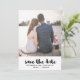 Casamento simples e chic preto e branco salve o cartão de data com impressão de bolinhas preto bonito e tipografia de script de pincel. Simplesmente adicione seus nomes e sua foto favorita para tornar este design clássico seu.