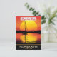 Convite de casamento para salvar a data dos Florida Keys, cartão postal de viagem. Barco solitário na água ao pôr do sol.