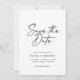 Foto de Script Minimalista Moderno Simples Casamento Salve a Data - Salve a Data no estilo com esta design moderna e elegante. Apresentando uma escrita em negrito e uma tipografia elegante, este layout de eterno é perfeito para um anúncio sofisticado. A paleta monocromática clássica de preto e branco garante uma aparência refinada, com a opção de personalizar cores para corresponder ao seu tema. A design de trás inclui espaço para uma foto carinhosa, fazer pessoal e na moda.