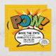 Personalize com seus nomes e detalhes para anunciar a data do seu evento especial. Tema de arte pop de história em quadrinhos, design moderno e divertido retrô, perfeito para casamentos, chá de panela, chá de bebê, batizados, festas de noivado, celebrações de aniversário, formaturas, festa de aniversário e outros eventos especiais ao longo do ano! Um design legal, moderno e divertido que dá um up no seu dia. Criado por ComicBookPop© em www.zazzle.com/comicbookpop*