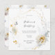Romântico elegante casamento floral Salve o convite de data em formato quadrado com uma delicada coroa botânica, os nomes do cônjuge em um roteiro sofisticado de caligrafia e suas informações de casamento personalizadas. Correspondência com o padrão floral atrás.