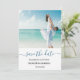 Casamento personalizado de praia fotográfica personalizado para um belo casamento. Convide amigos e entes queridos para celebrar seu dia especial, Clique no botão "Personalizar!" para alterar o tamanho do texto, a cor do texto, o estilo da fonte e muito mais!