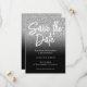Sobreposição de arte digital com brilho falso cinza prateado em preto para as informações da data de salvamento do seu casamento.
