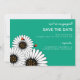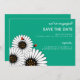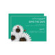 Este anúncio SAVE THE DATE apresenta uma nova e moderna design de Gerbera Daisies brancos com insetos de senhora. Facilmente personalizado com suas informações. Muitas cores - verde-pavão ::ENVELOPES INCLUÍDOS: