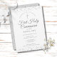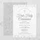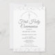 Um convite elegante para guardar a data da Primeira Comunhão, apresentando delicado brilho prateado. Você pode personalizar com os detalhes da sua celebração especial em texto prateado sofisticado. Concebido por Thisisnotme©