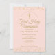 Uma elegante Primeira Comunhão salva o convite de data com delicada poeira de ouro em fundo rosa-pincelado. Você pode personalizar com seus detalhes especiais de celebração em texto de ouro-chico. Projetado por Thisnotme©