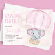 Crie o seu próprio primeiro aniversario do balão de elefante rosa-claro Salve a data! Personalize esta design com seu próprio texto. Você pode personalizar ainda mais este design selecionando o botão "Editar Detalhes", se desejar.