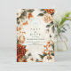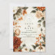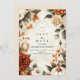 Celebre seu casamento outono com elegância eterno. Este design apresenta creme clássico e florais laranja queimados, organizados em torno de um layout limpo e vintage. Perfeito para casais planejando uma celebração de outono romântica, rústica ou inspirada em ventre. Totalmente editável para se adequar ao seu dia único.