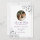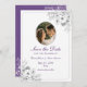 Announce your wedding in style with this elegant purple floral Save the Date card featuring a photo, modern script typography, and delicate line-art florals. The clean layout highlights your picture beautifully, while the purple border and floral corner add a romantic, timeless touch.