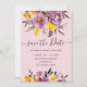 No outono elegante, casamento floral roxo de inverno, salvar a data com uma caligrafia moderna e elegante, o casamento de Script em flores roxas, laranja e amarelas com folhagem verde-sábio em rosa pastel.