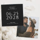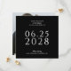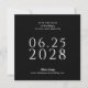 Um casamento simples, elegante e saboroso salve o cartão de dia em preto com texto branco e apresenta uma foto do casal feliz no verso do cartão. O modelo de texto em branco é fácil de preencher com suas informações e a data é mostrada em grandes textos em negrito para ajudar seus futuros convidados a se casar no planejamento do seu grande dia. A forma quadrada única desta carta adiciona estilo moderno e deixa uma bela impressão para os seus destinatários.
