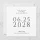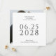 Um casamento simples, elegante e saboroso salve o cartão que mostra uma foto do casal feliz no verso do cartão. O modelo de texto na cinza de tendências é fácil de preencher com suas informações e a data é mostrada em grandes textos em negrito para ajudar seus futuros convidados a se casar no planejamento de seu grande dia. A forma quadrada única desta carta adiciona estilo moderno e deixa uma bela impressão para os seus destinatários.