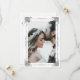 Um modelo de foto limpo, moderno e na moda verticalmente orientado tem ornamentos de canto ornamentado e flores de linha ao seu redor que formam um quadro limpo e elegante. O verso tem um rico de texto de caligrafia em negrito que lê, salve a data. Há modelos na frente e no verso para sua redação personalizada. Substitua a fotografia pela sua e envie-a aos convidados para que eles compareçam ao seu casamento especial na data escolhida.