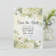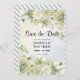 Convite elegante e bonito com flores de verão, e rosas verdes e brancas claras em um quadro de ouro. Abelhas como um detalhe decorativo. Fundo de aquarelas com pontos de cinza clara e branco, e nas bordas das cinzas diagonais