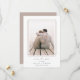 Um moderno e minimalista salva a design com sotaques geométricos. Sua foto vertical é emoldurada por uma dupla borda geométrica em um trenó neutro, com seus detalhes de casamento embaixo. Um sotaque de escrita de caligrafia etérea adiciona um toque de suavidade a este design simples e mínimo. Adicione detalhes adicionais à parte de trás coordenada por cores, como o site do seu casamento.
