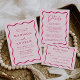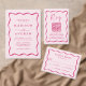 Anuncie seu próximo casamento com estilo com nossos save the dates de foto com Moldura Ondulada Moderna! O design apresenta seus nomes e detalhes do casamento emoldurados por uma moldura ondulada rosa escuro contrastando com um fundo rosa claro. O verso do save the date retrô apresenta sua foto de noivado vertical com seu site de casamento exibido abaixo. Essa mistura requintada de design moderno e retrô garante que seu save the date não seja apenas um lembrete de sua próxima celebração, mas um item precioso que captura a essência de sua história de amor.