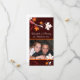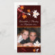 Folhas de outono Casamento vermelho-alaranjado e castanho Salve o cartão com fotos da Data, com lindas folhas de vermelho do outono, laranja e branco em cores do outono e espirais graciosas sobre fundo marrom. Um convite elegante e moderno perfeito para um casamento outono tradicional ou contemporâneo.