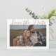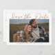 Este casamento castanho Sena Salve a data mostra uma cor real quente acima de uma foto do noivado de outono do casal feliz. A escrita adorável e minimalista apresenta uma simples tipografia cursiva juntamente com uma fonte de serifa moderna e dinâmica. Este castanho macio é perfeito para um evento do outono.